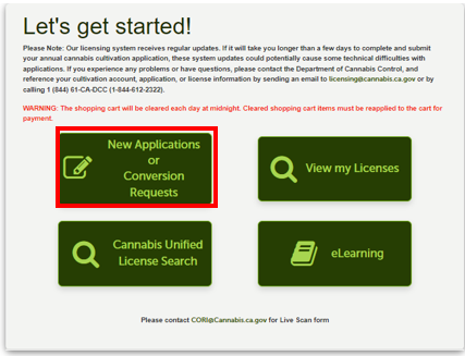 Select Conversion Request if you are a licensee requesting to convert your existing cultivation licenses into a Large or Medium Cultivation License.