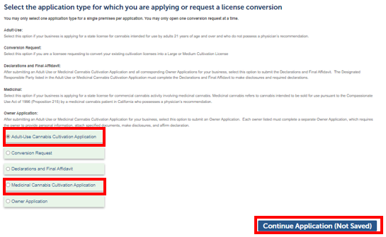 - Choose Application Type: Adult-Use or Medicinal