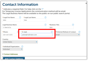 In the Contact Information window, be sure to use the same email address registered by the DRP in his or her CLS account. Any mix-ups caused by using different email addresses will greatly delay processing your application.