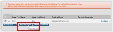 The Designated Responsible Party is prefilled on the Owner List. However, as the red text banner above the table indicates, you must edit the entry for DRP before going further.