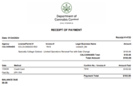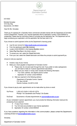 Or, you can choose Cash Payment. Print your invoice and call the number on your letter to arrange an appointment with one of the DCC offices located in Sacramento, Eureka, or North Hollywood.