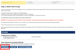 Note: The shopping cart will be cleared each day at midnight. Cleared shopping cart items must be reapplied to the cart for payment.