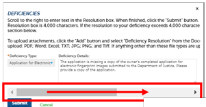 A pop-up window displays next, for you to enter a response to the deficiency.