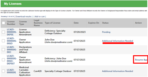 In this document we’ve shown how to respond to License Application Amendments and Owner Application Amendments, referred to as “main application deficiencies” and “owner application deficiencies.” Remember that all amendments (deficiencies) must be responded to and cleared by DCC before your cannabis cultivation license can be issued.