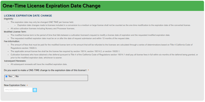 If you do not want to change the expiration date, displayed in the prior section under Renewal Information above, select the “No” button.