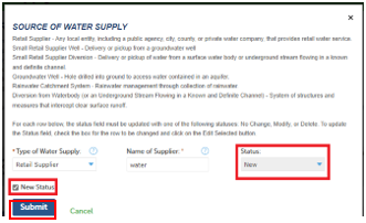 A new window will open. Select the Type of Water Supply from the first drop down list.