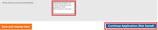 You cannot change any fields here, but you can write a note describing the amendment you are proposing. Notice that the text box can be expanded by dragging the lower right corner.